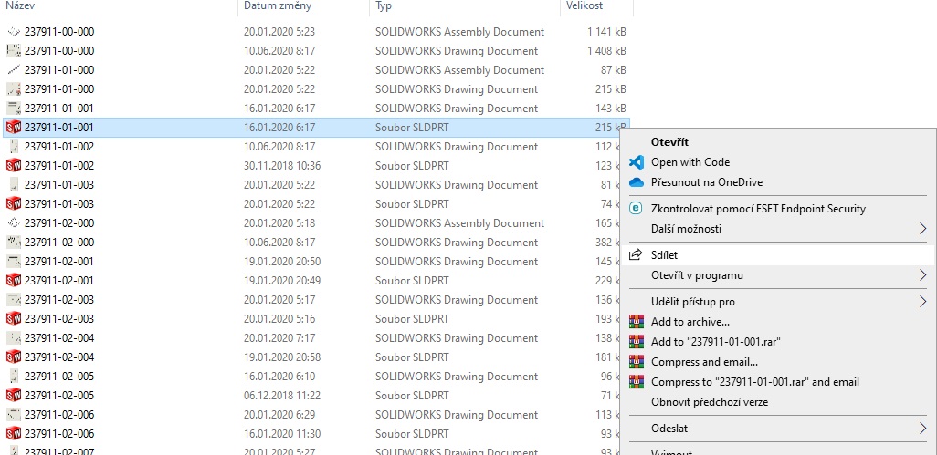 A je taky zváštní, že sestava a výkres mají název SOLIDWORKS Assembly Document a SOLIDWORKS Drawing Document, ale díl má název pouze: soubor SLDPRT