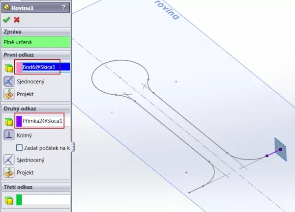 Vytvořte novou konstrukční rovinu kolmou na předchozí koncový bod skici.
