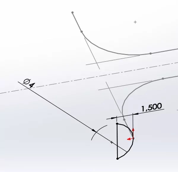 V nové konstrukční rovině načrtněte uzavřený obrys skládající se z oblouku a přímky. Uzavřete skicu.