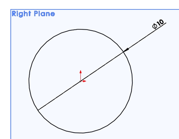 Založte v Pravé rovině náčrt a nakreslete kružnici o průměru deset milimetrů.