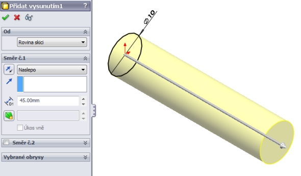 Vysuňte kružnici příkazem Vysunutí do vzdálenosti čtyřicet pět milimetrů a dokončete příkaz.