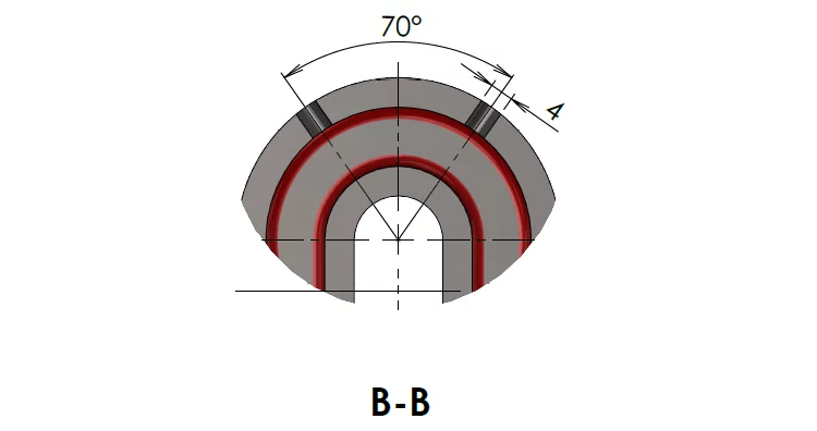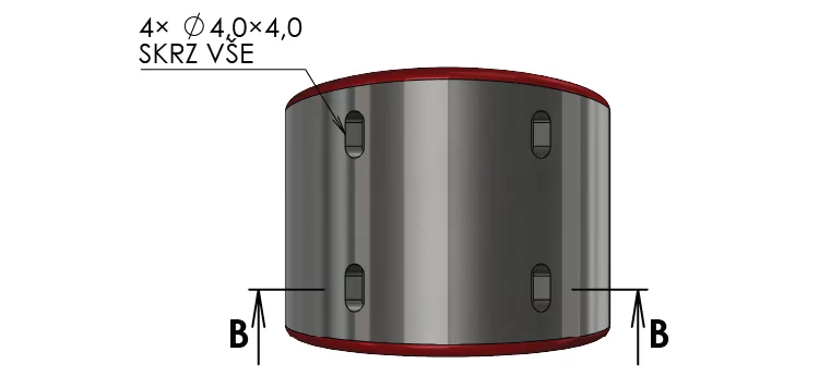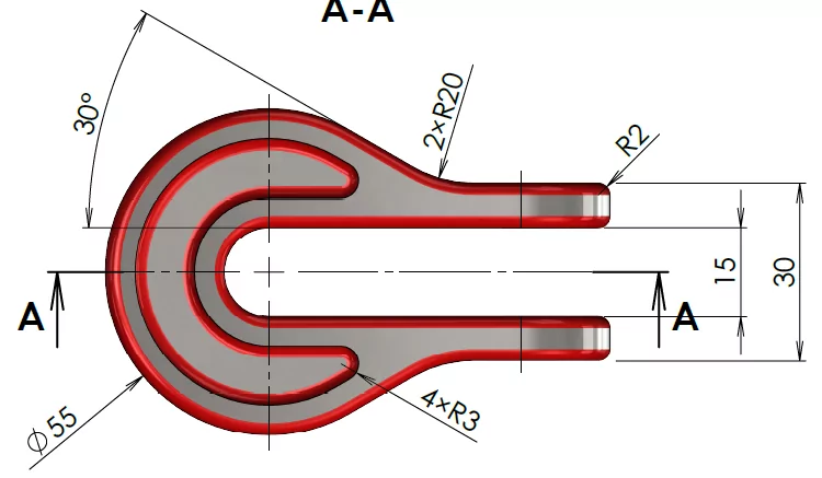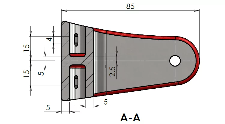 Pohled v řezu A-A, který plyne z horního pohledu: