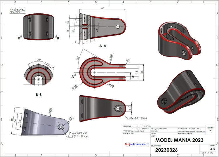 Soutěžním úkolem bylo zkonstruovat model podle zadání, kterým byl výkres. Podívejte se na zadání, zkuste si sami model zpracovat a zároveň si změřte čas. Pokud si nebudete vědět rady, můžete postupovat podle našeho návodu krok za krokem.