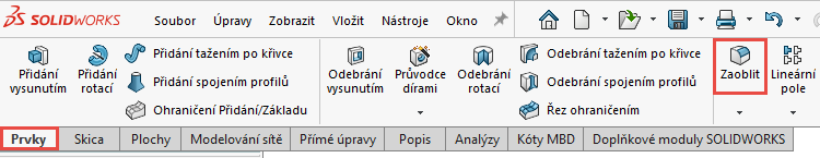 Ze záložky Prvky vyberte příkaz Zaoblit.