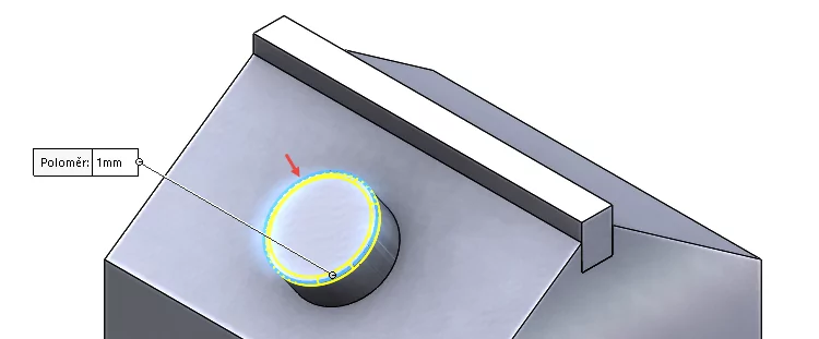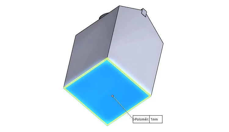 Klávesou Enter opětovně aktivujte příkaz Zaoblit. Vyberte spodní plochu, čímž se automaticky provede výběr obrysových hran.