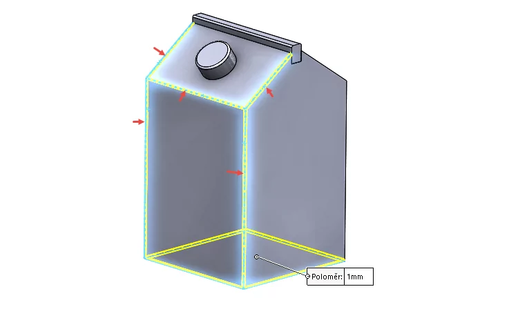 Otevřete si rozpracovaný model a pokračujte v posledních úpravách → modelování zaoblených hran.