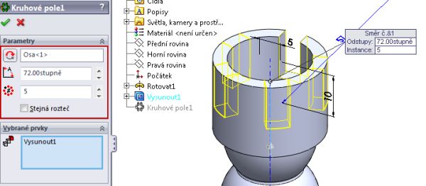 Otevřete model pěšce a uložte jej jako nový dokument s názvem věž.sldprt. Klikněte pravým tlačítkem ve stromové struktuře na vytvořenou operaci Rotovat a klikněte na příkaz Upravit prvek.