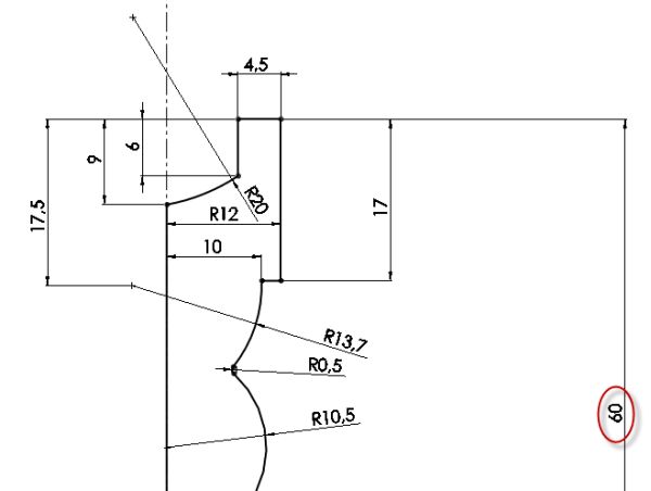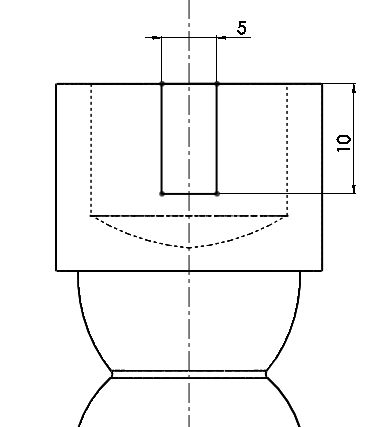 Vymažte vrchní část skici tak, jak je uvedeno na obrázku.