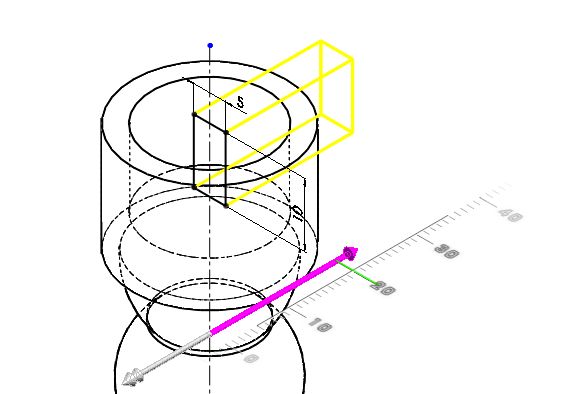 Nyní vytvořte model z profilu součásti rotací kolem osy pomocí příkazu Přidání rotací.