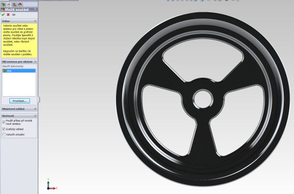 Založte nový díl sestavy. Vložte díl ráfku a přejeďte kurzorem do levého panelu.